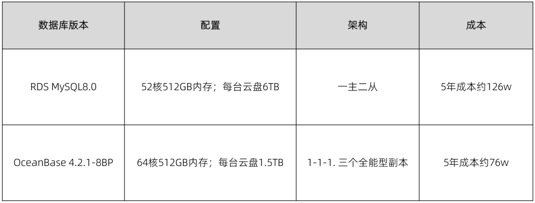第二,由于 OceanBase 使用 LSM-Tree 架构,优先写内存和日志,对于云盘的性能要求也下降了,云盘的性能级别从 P2 降为了 P1。相较之下,原本在 RDS 需要使用 L2 级别 10w IOPS性能的数据盘才能扛住的业务访问压力,OceanBase 使用 L1 级别 5w IOPS 的数据盘就足够支撑。