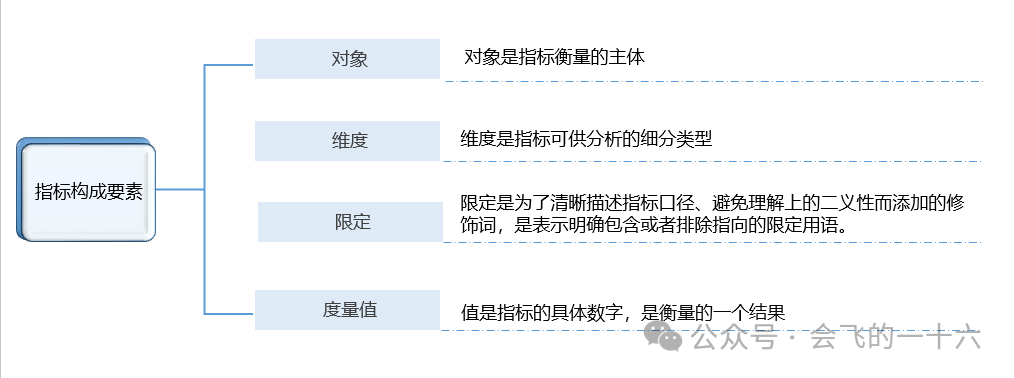 指标是一种抽象定义的数值,用于度量一个对象的特定维度的数量特征。例如,GDP就是一个指标,用于度量一个国家或地区所有常住单位在一定时期内生产活动的最终成果。比如,据国家统计局发布的数据,我国2023年GDP为126.0582万亿元,位居全球第二位,这是衡量我国2023年的经济状况和发展水平的重要指标。具体到企业经营领域,指标的应用范围非常广,是凝结了业务逻辑的数据,是企业经营活动的度量和业务对象的数字孪生。例如,电商行业经常用到的GMV(Gross Merchandise Volume,商品交易总额)就是一个指标,用于度量电商平台一段时间内成交实物和虚拟商品销售产生的总交易额(通常采用不扣除优惠券和折扣促销的口径),它是衡量一个电商平台市场竞争力的重要指标,是发生在这个平台的交易行为结果的数字抽象和孪生。比如,据媒体报道,抖音平台电商2023年GMV超过2万亿元,成为继阿里巴巴、京东、拼多多之后电商市场的重要一极。2.指标的构成