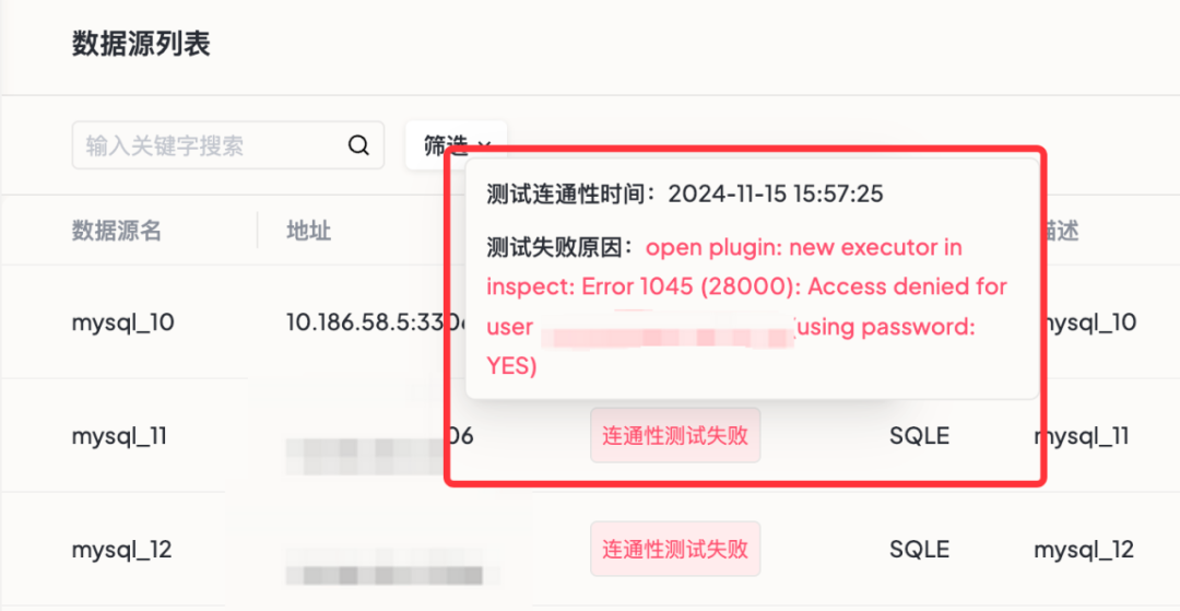 此外,使用者还可以通过系统自动标记的异常连接,快速定位问题数据源,确保业务稳定运行,让数据源管理更轻松。
