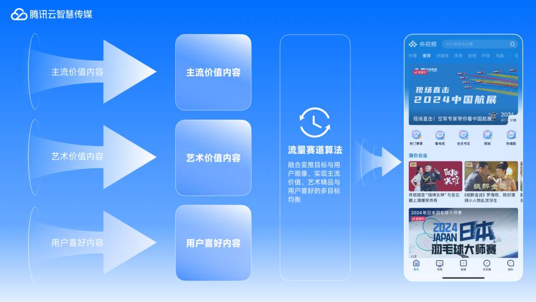 腾讯参与总台自主开发建设的基于主流价值认知大模型的总台算法,该算法已在总台各新媒体端落地,覆盖数亿用户,为传播主流价值观发挥了重要作用。