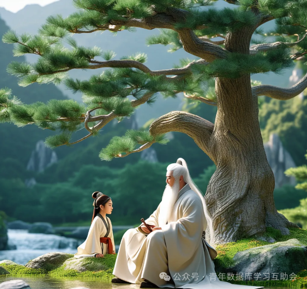 白须飘飘,江湖人称“智海大师”,正襟危坐于古松之下,目光如炬,凝视着眼前这位初入江湖的少女——小倩。她,便是今日的求学者,明日的数据江湖高手。