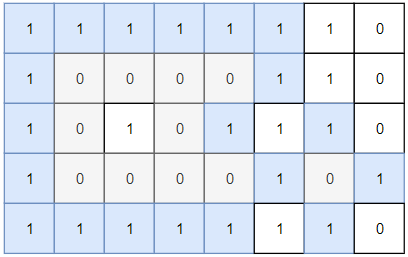 class Solution {public:int closedIsland(vector<vector<int>>& grid) {int res = 0, m = grid.size(), n = grid[0].size();for (int i = 0; i < m; ++i) {for (int j = 0; j < n; ++j) {if (grid[i][j] == 0) res += dfs(grid, i, j);}}return res;}int dfs(vector<vector<int>>& grid, int i, int j) {int m = grid.size(), n = grid[0].size();if (i < 0 || i >= m || j < 0 || j >= n) return 0;if (grid[i][j] > 0) return 1;grid[i][j] = 2;return dfs(grid, i + 1, j) * dfs(grid, i - 1, j) * dfs(grid, i, j + 1) * dfs(grid, i, j - 1);}};