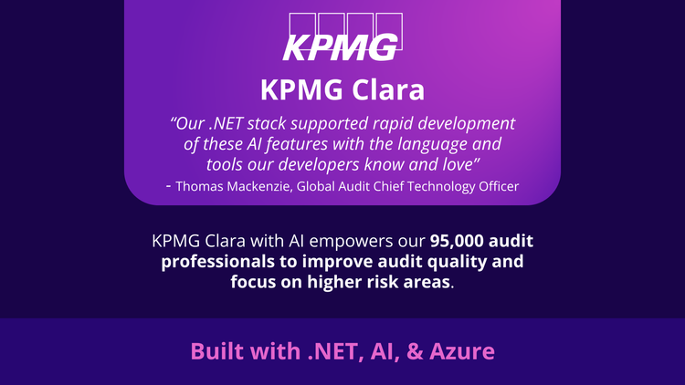 KPMG Clara 是一个典型案例,旨在为全球 95,000 名审计师提高审计质量和效率。凭借 .NET 的强大支持和在 Azure 上的安全扩展,KPMG 实现了符合严格行业标准的先进 AI 功能,进一步证明了 .NET 和 Azure 在推动高性能、可扩展 AI 解决方案方面的重要作用。