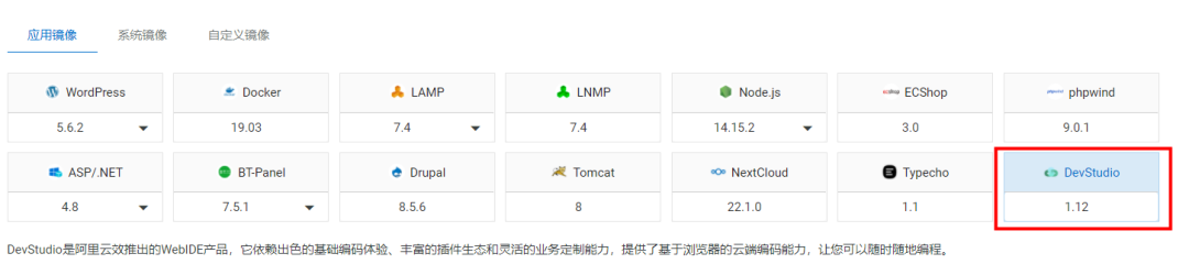 ◾其中,需要在镜像区域,选择应用镜像为DevStudio 1.12。