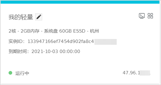 在服务器列表页面,找到通过DevStudio镜像创建的轻量应用服务器,然后单击服务器卡片。
