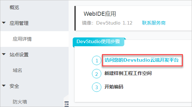在DevStudio使用步骤区域,单击访问您的Devstudio云端开发平台。