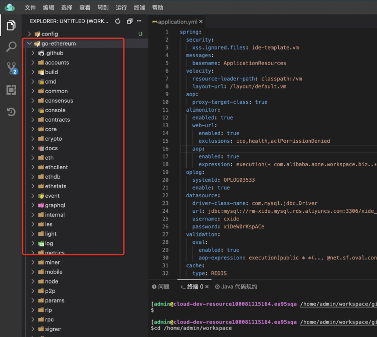 cd /home/admin/workspace# clone代码git clone git@github.com:ruopuzi/go-ethereum.git --depth=1# 配置开发者账号cd go-ethereumgit config user.name ruopuzigit config user.email goodyfx****@163.com