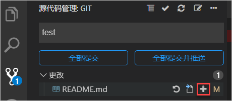 i. 在更改区域,单击文件后的+,将文件加入暂存区。