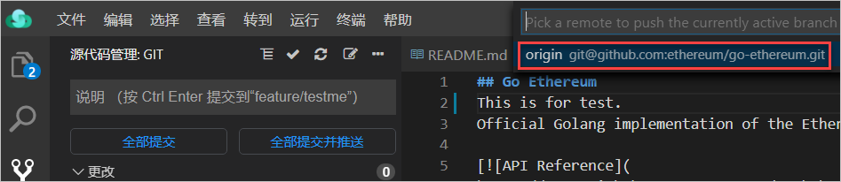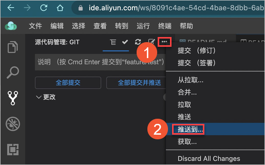 i. 在源代码管理:GIT区域,选择... > 推送到。