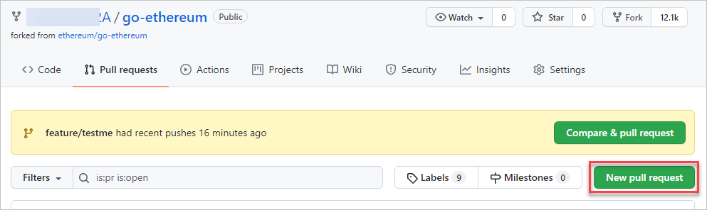 i. 在GitHub中打开Fork的go-ethereum代码库。