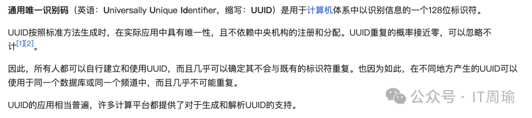 不过由于UUID会占用更多的空间和本身的无序性,会影响数据库的插入、查询等操作的效率,需要慎重考虑是否使用。
