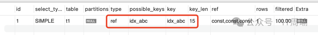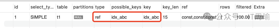 explain select * from t1 where a=1 and b=1 and c=1;