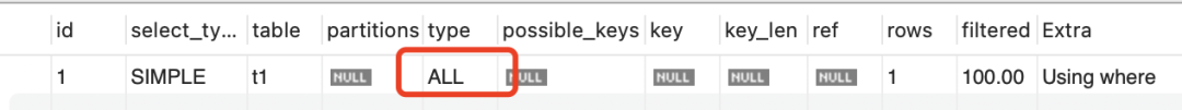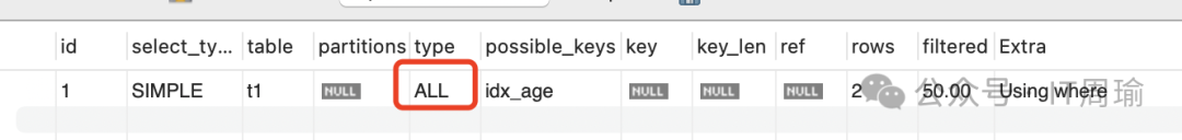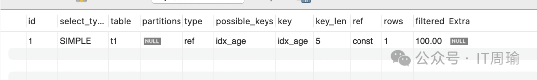 explain select * from t1 where age = 18;