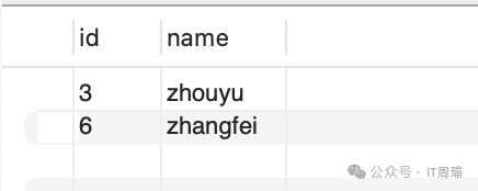 insert into t1(id, name, age) values(3, 'zhouyu', '18');