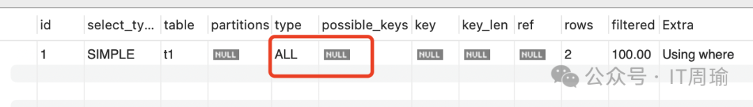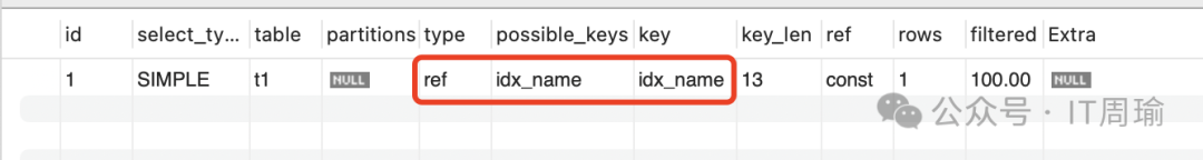 explain select * from t1 where name = 'zhou';