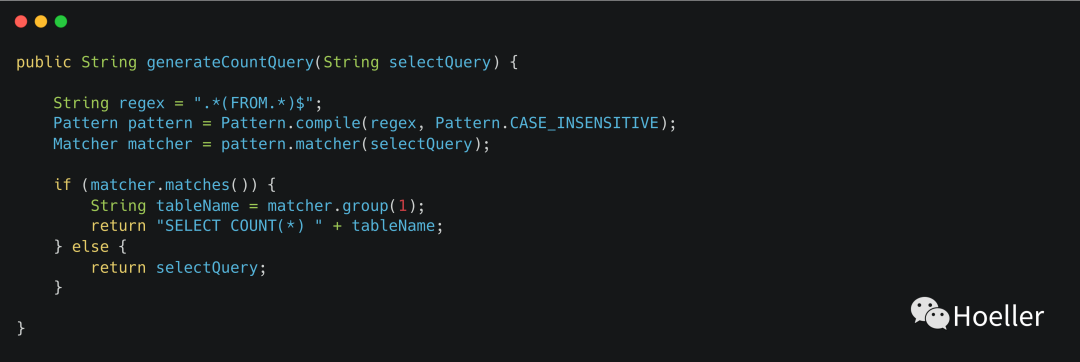 我这里提供一个方法,能够把简单的select语句改造为count语句(原谅我不能把公司内部的代码贴出来~~~)