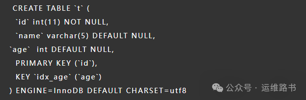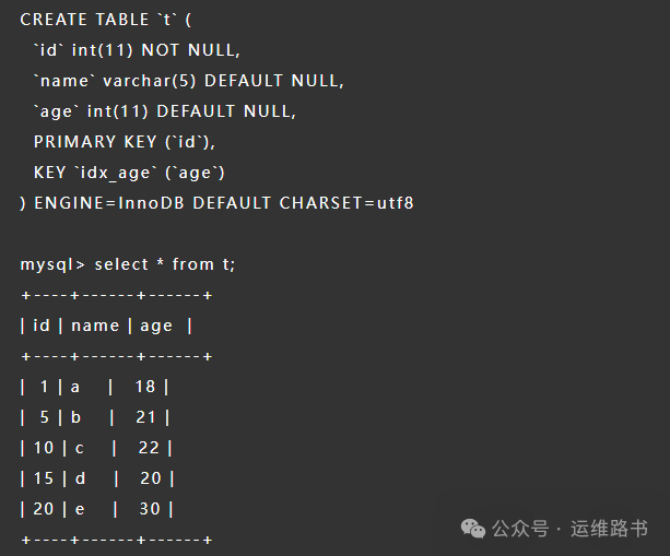 建一个实验表,主键为id, 二级索引age;