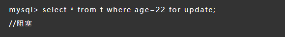 事务B 被阻塞,由于age=22的这行数据被事务A加了记录锁。