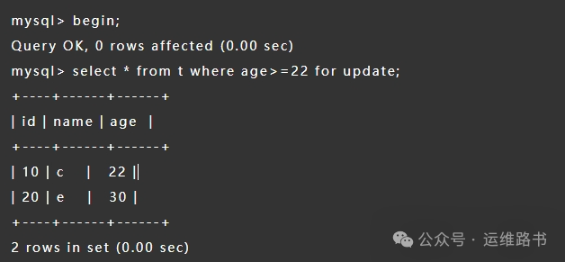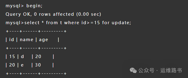 其他事务即无法更新或者删除 id = 20 的记录,同时无法插入 id 值为 16、17、18、19 的新记录;