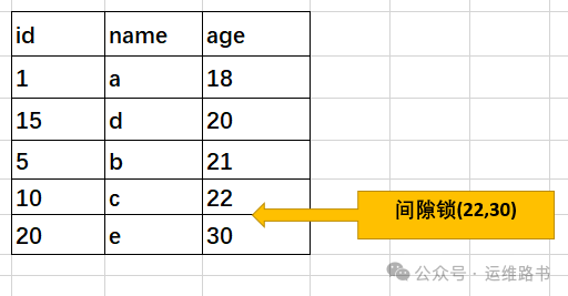 其他事务无法删除或更新 age=30的这行记录,其他事务无法插入age值范围为 23,24,25... 29的新记录。同时,age=22和age=30的新记录也无法插入。