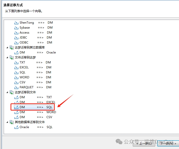 3、迁移方式,选择达梦迁移到文件,支持excel、sql、文本等,我这选择迁移到SQL,如图: