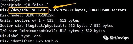 2、查看当前虚拟机磁盘容量,执行命令如下: