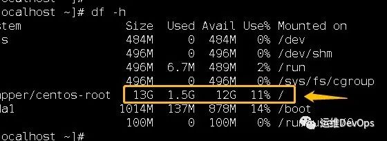 1、首先查看扩容之前磁盘大小,可使用空间为11G,执行命令如下: