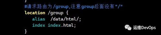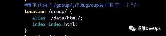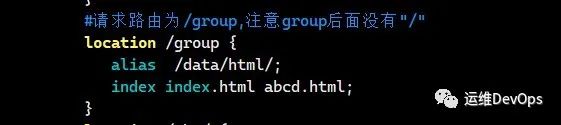 1、下面在Nginx配置文件中定义路由,group后面有”/”,并通过alias指定,如图: