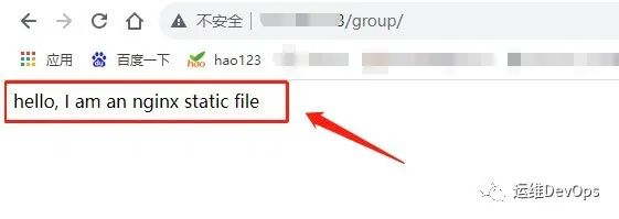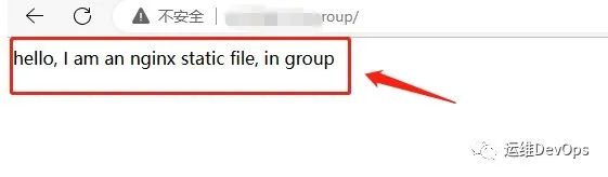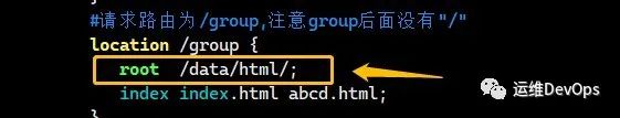 上面我们说过使用root指定路径后,location中的路由是会加入到路径中的,因此,我们在/data/html目录下创建group目录,并在group中定义index.html,内容如下: