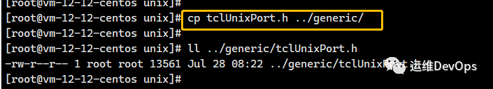 安装完成后,进入源代码目录,将unix下面的tclUnixPort.h拷贝到上一级目录的generic目录中,如图: