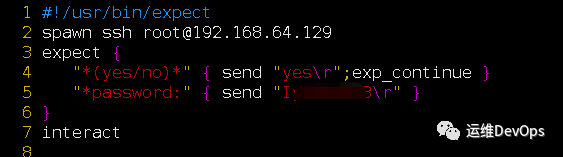 第8行:通过exp_continue来循环执行expect,可以简化写法,要不就要写多个expect