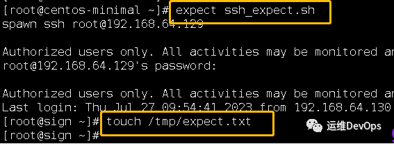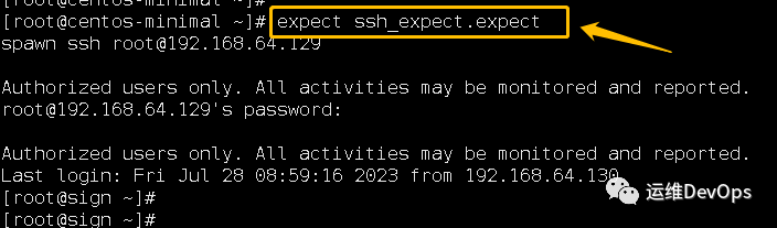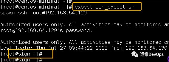 例1:下面定义expect脚本,实现远程登录其他linux机器,如图: