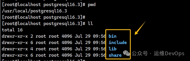 安装后,在目录postgresql16.3下可以看到编译后的文件,如图: