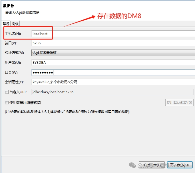 4、数据源选择存在数据的DM8,因为需要先从此数据库中导出数据,如图: