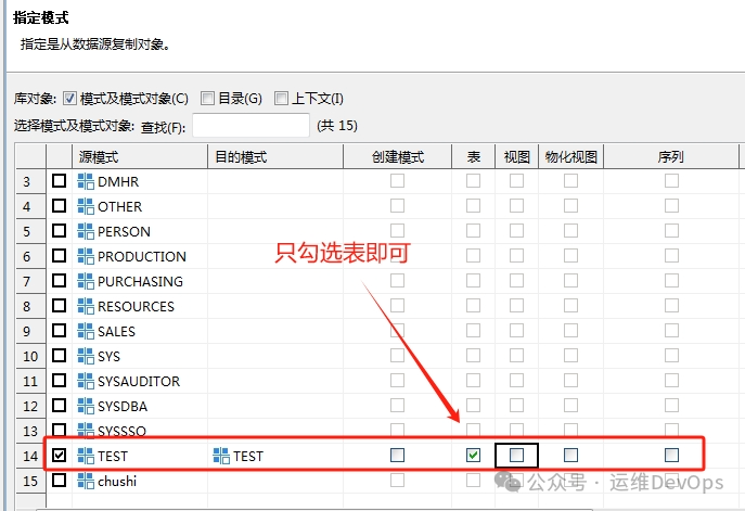 7、选择要导出的表,只勾选表,点击下一步,如图: