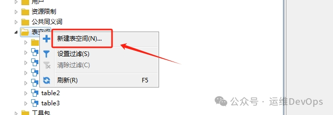 1、首先通过客户端工具连接要导入数据的数据库,创建表空间,如图:
