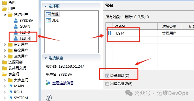 解决办法就是先删除管理用户,并选择级联删除,然后再次删除表空间即可,如图: