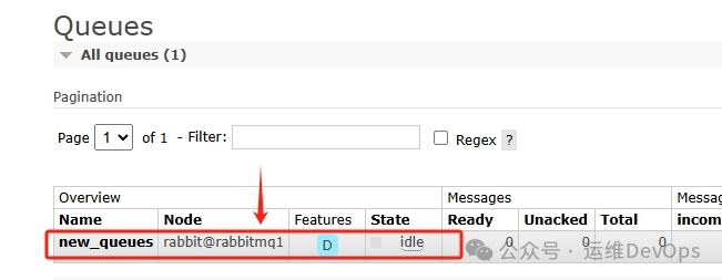 队列创建在了集群中的rabbitmq1节点上,如图: