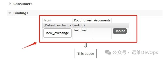 点击Bind后即可绑定成功,此时如果切换到Queues页面,点击刚才创建的队列,也可以看到绑定过来的交换器,如图: