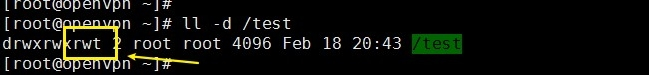 chmod o+t test #给test目录设置stiky权限chmod o-t test #给test目录取消stiky权限