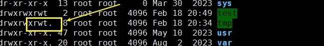 备注:linux中的/tmp目录默认就是设置stiky权限的,如图: