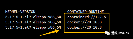 执行kubectl get nodes -o wide可以查看当前使用的runtime,如图: