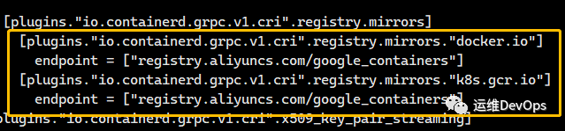 1、修改配置文件/etc/containerd/config.toml,添加镜像下载加速器,如图: