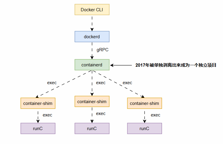 Docker 实际上是由多个组件构成的,其中之一就是 containerd。从 Docker 1.11 版本开始,Docker 的容器运行时部分(即实际负责启动、停止、管理容器的部分)由 containerd 承担。因此,containerd 是 Docker 内部的一个组件,负责容器的生命周期管理(如启动、停止、暂停等)。