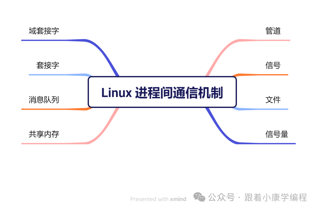 温馨提示:上面的代码示例只是一个基础引导,帮助大家快速理解每种进程间通信方式的基本用法。如果你想更深入地学习,并获取完整的代码示例,欢迎关注我的公众号 「跟着小康学编程」。在公众号后台回复 「 process 」,你就能获取完整的代码资源哦!(估计得到10月2号才能获取完整代码,为了保证代码的正确性,笔者需要2-3天的时间来编写。)