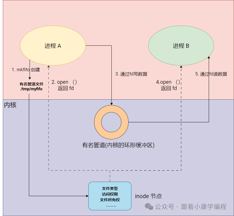 有名管道是 Linux 中一种特殊的文件,它允许不同的进程通过读写这个文件来相互通信。
