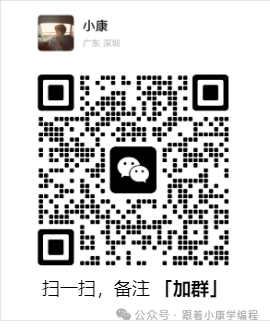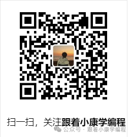 想更快找到我? 直接微信搜索 「跟着小康学编程」,或者扫描下方二维码关注,和一群爱学习的编程小伙伴一起成长吧!