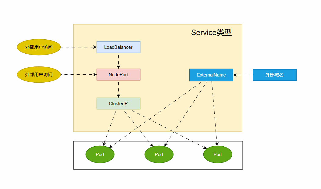 例如,NodePort 和 LoadBalancer 类型的 Service 可以直接暴露服务给外部。