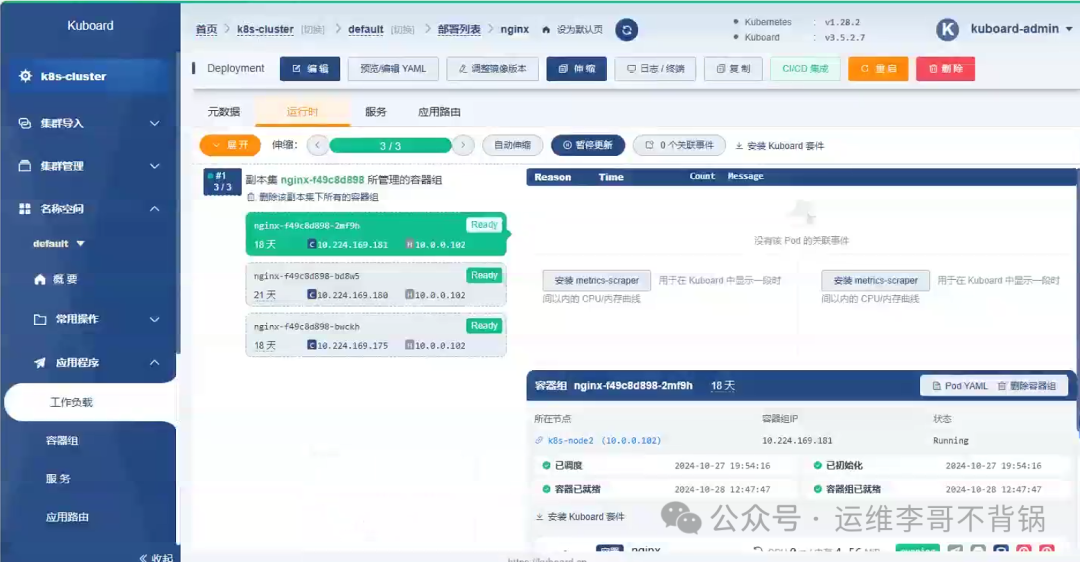 对接完k8s集群后就可以查看到集群的所有信息,并且可以通过kuboard对集群进行管理了。