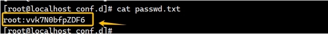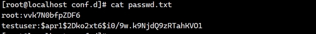 2、在conf.d目录下创建passwd.txt,将用户名和密码写入,如图: